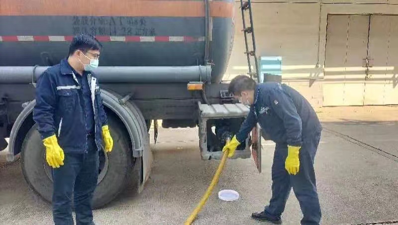 一波三折,鍥而不舍。11月5日18點(diǎn),通過與工信局不間斷地聯(lián)系,公司開具了到蘆淞區(qū)提貨的通行證明,并立刻派車前往,但車輛到達(dá)荷塘區(qū)與蘆淞區(qū)交界處時(shí)被拒絕通行。同時(shí),由于液堿屬于危險(xiǎn)化學(xué)品,其儲(chǔ)存、物流及使用都有嚴(yán)格的管理要求,市內(nèi)替代貨源的尋找難度大。正當(dāng)公司準(zhǔn)備從市外調(diào)貨進(jìn)行接駁時(shí),事情出現(xiàn)了新的轉(zhuǎn)機(jī)。11月5日20點(diǎn),公司通過多方聯(lián)系,得知石峰區(qū)815油庫有一批液堿因疫情封控留在了株洲。雖然市內(nèi)貨源已找到,但接下來如何轉(zhuǎn)運(yùn)至公司成為一大難題。
