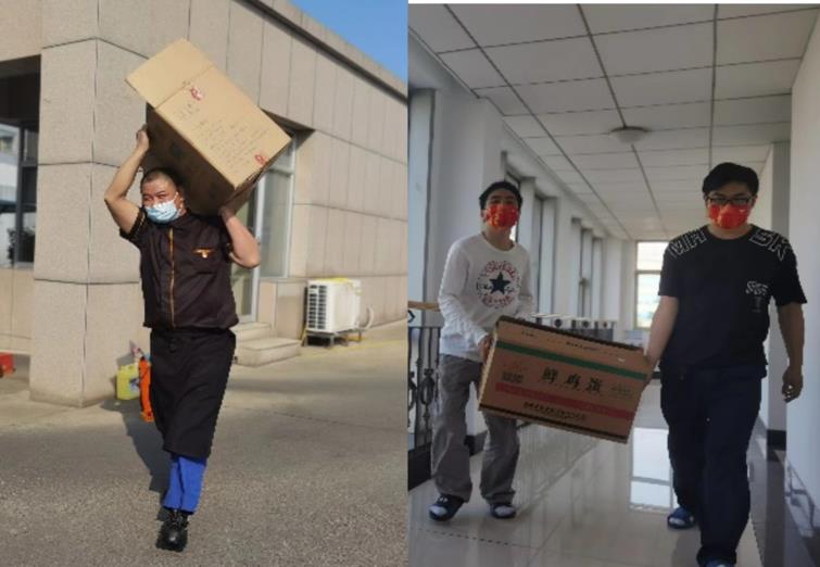 疫情防控下,供應(yīng)商的送貨車輛無法進入園區(qū),只能將預(yù)定貨物放至門崗,需食堂工作人員自行推車到門崗提取物資,物資轉(zhuǎn)運車緊缺,只能靠人力進行搬運。有人說,“疫情當(dāng)前,我們也想出一份力,這是工作,也是心意。相信大家團結(jié)一致,一定可以打贏這場疫情防控戰(zhàn)?!笔赝嘀部藭r艱成為了特殊時期大家的共同信念。