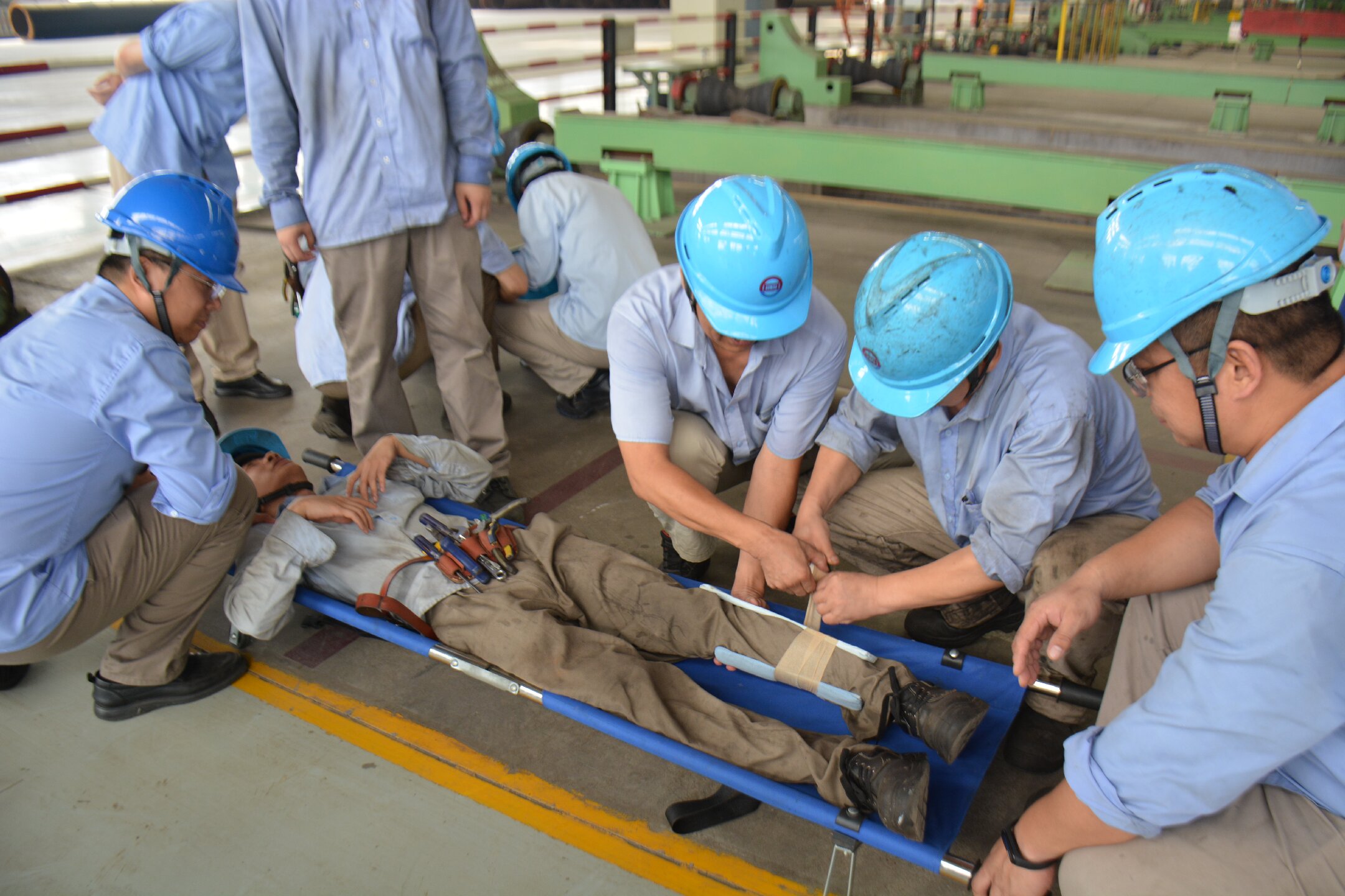 此次演練緊密結(jié)合分廠生產(chǎn)實際,模擬真實事故場景,全方位檢驗應(yīng)急預(yù)案與現(xiàn)場處置的匹配度。演練前,此次演練總指揮管治軍帶領(lǐng)大家學(xué)習(xí)了《工貿(mào)企業(yè)重大事故隱患判定標(biāo)準(zhǔn)》,同時講解了此次事故演練的主要內(nèi)容。隨著總指揮三聲哨響,演練正式開始?,F(xiàn)場處置組、醫(yī)療救護(hù)組等各應(yīng)急小組迅速響應(yīng),切斷設(shè)備電源,對傷員實施緊急救治并送醫(yī),同時疏散周邊人員、封鎖現(xiàn)場,各環(huán)節(jié)緊密銜接,高效完成應(yīng)急處置。